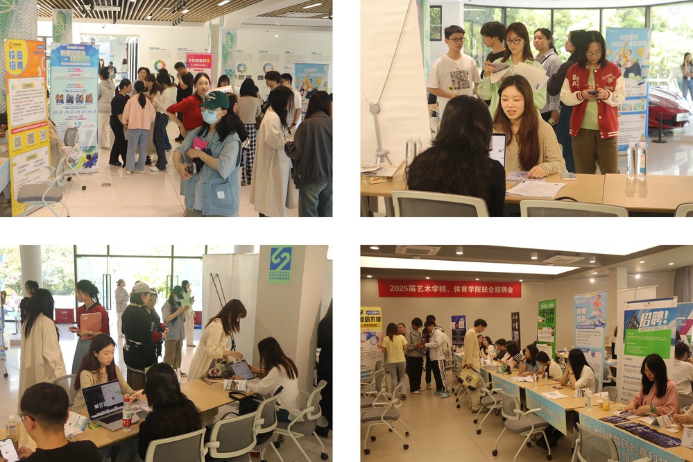 4月18日下午,艺术设计与传媒学院、体育科学与工程学院在徐汇校区晨园联合举办了2025年专场招聘会。艺术设计与传媒学院院长汪军、副书记王珊,体育科学与工程学院副书记吴婷、挂职干部副院长刘鑫来到现场,与用人单位和求职学生进入深入交流。
