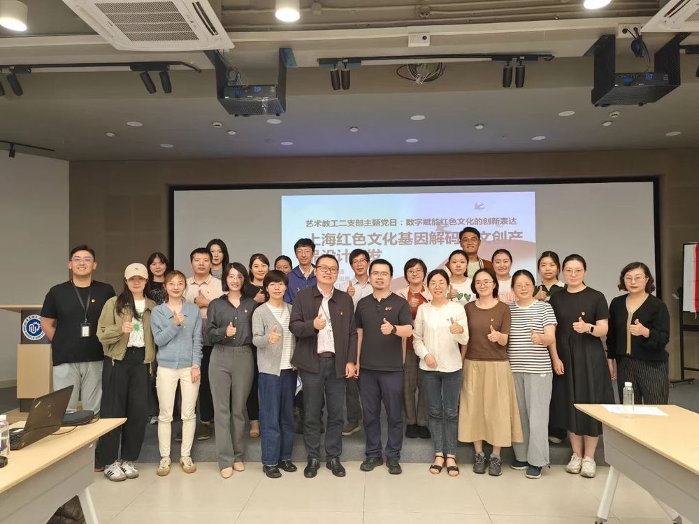 为进一步开展深入贯彻中央八项规定精神学习教育,注重教育实效,确保学习教育结合艺术专业特色,积极探索新时代红色文化传承的崭新路径。6月10日下午,艺术学院教工第二党支部在晨园109开展了“数字赋能红色文化的创新表达”主题党日观摩活动,邀请校工会副主席、艺术学院工会主席、艺术学院教工第一党支部书记叶俊男作《上海红色文化基因解码与文创产品设计开发》主题讲座。艺术学院教工第一党支部、艺术学院教工第二党支部,以及来自化工学院、化分学院、商学院、社会学院、生工学院、外语学院、继续教育学院、图书馆等多家单位的师生党员共同参加了本次活动。活动由艺术学院教工第二党支部书记蒋正清主持。