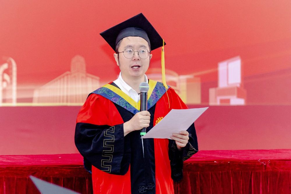 本科毕业生代表梁之同参军经历中的磨砺与成长,回到华理后的奋斗历程,为梦想拼搏的信念,让现场的每一位同学都深受鼓舞。研究生毕业生代表戚博用真挚的话语回顾了在华理的点点滴滴,表达了对母校、老师和同学的不舍与感恩,勾起了大家对校园时光的美好回忆。本科班导师代表门晓璇以情真意切的温暖话语为毕业生们送上美好祝福,鼓励所有学子在未来的道路上追逐梦想、勇毅前行。研究生导师代表杨超翔希望大家珍惜当下,永远不忘同学与师生情谊,鼓励大家奋勇向前,勇敢地面对未来的挑战,创造属于自己的辉煌。校友代表郝梁梁鼓励大家要坚定自己的信念,敢为人先,不断挑战和超越自我,为各位学弟学妹的未来发展带来了宝贵的有益启发。
