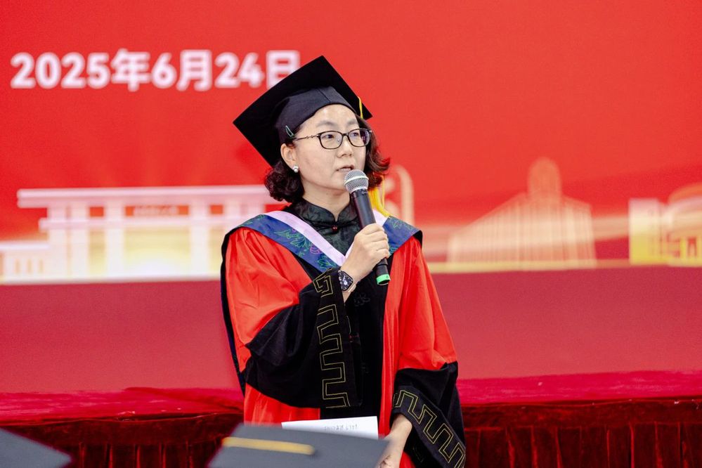 王珊宣读了2025届优秀毕业生表彰决定。艺术设计与传媒学院共有17名本、硕毕业生获评“2025届上海市优秀毕业生”,32人获评“2025届华东理工大学优秀毕业生”。这不仅是对优秀学子们多年努力奋斗的肯定,也是对全体艺设学子的鼓舞。