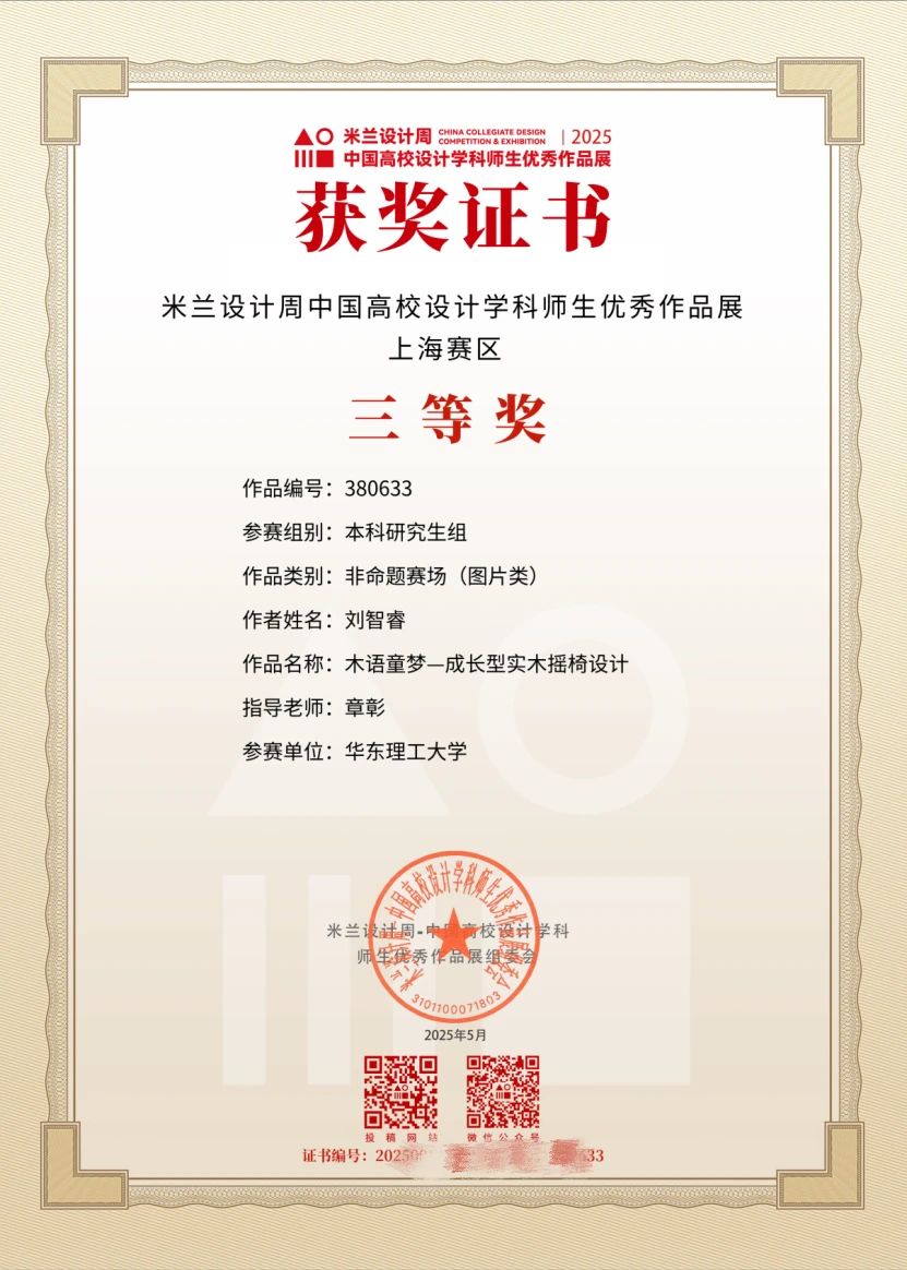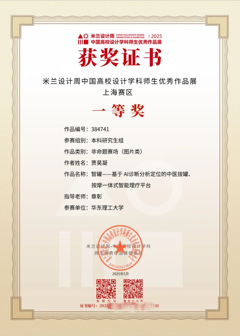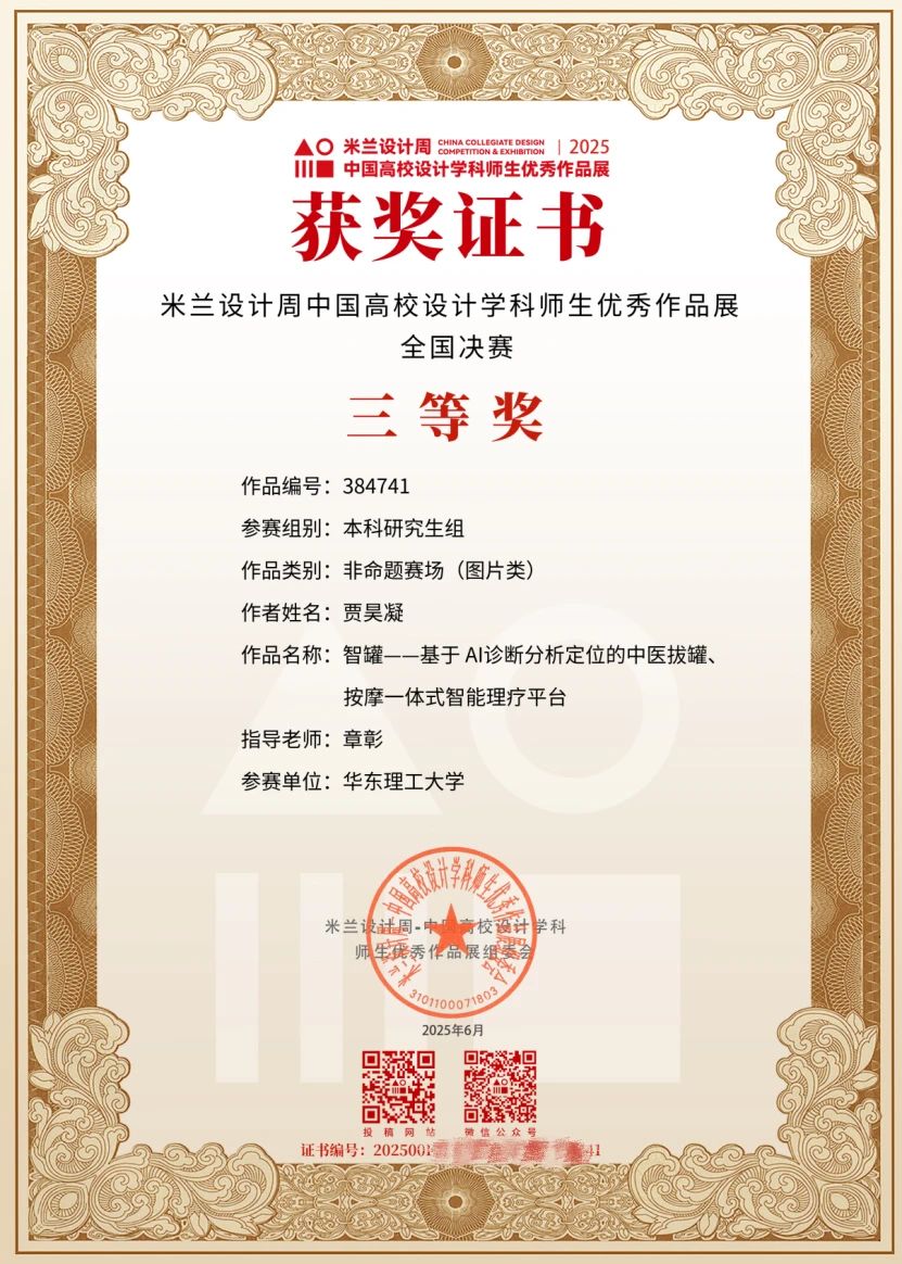 为推动课程教学改革实践创新,通过“以赛促学、以赛促教、以赛促创”提升人才培养质量。《机能造型》课程结合2025年第九届米兰设计周高校设计作品展非命题赛道的参赛要求,精选部分优秀学生课程作业参赛。该赛事连续多年入选全国高校学科竞赛排行榜,具有较高专业影响力。最终,我院工业设计230级大二学生在竞赛中取得优异成绩:贾昊凝荣获国赛三等奖、省赛一等奖,刘智睿荣获省赛三等奖。