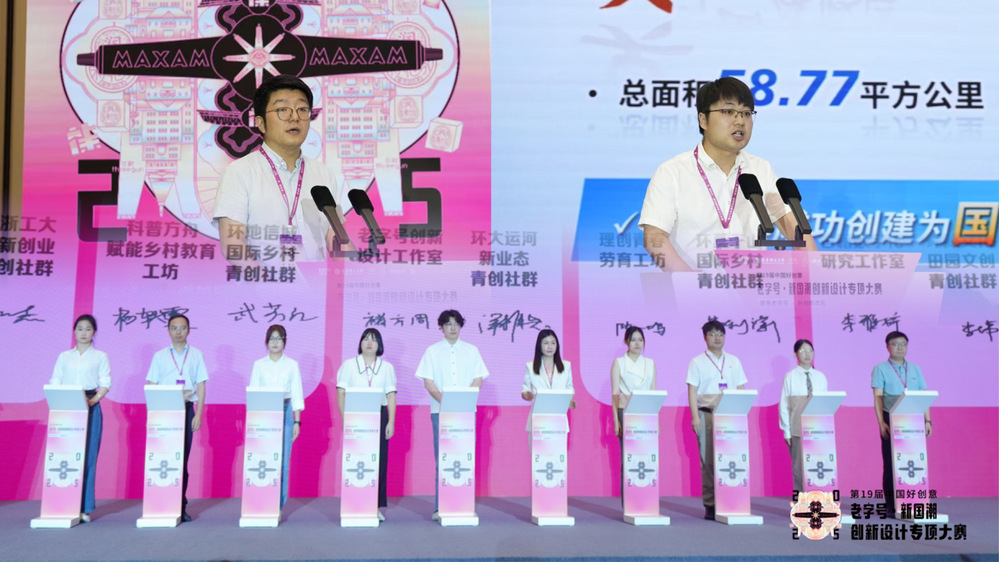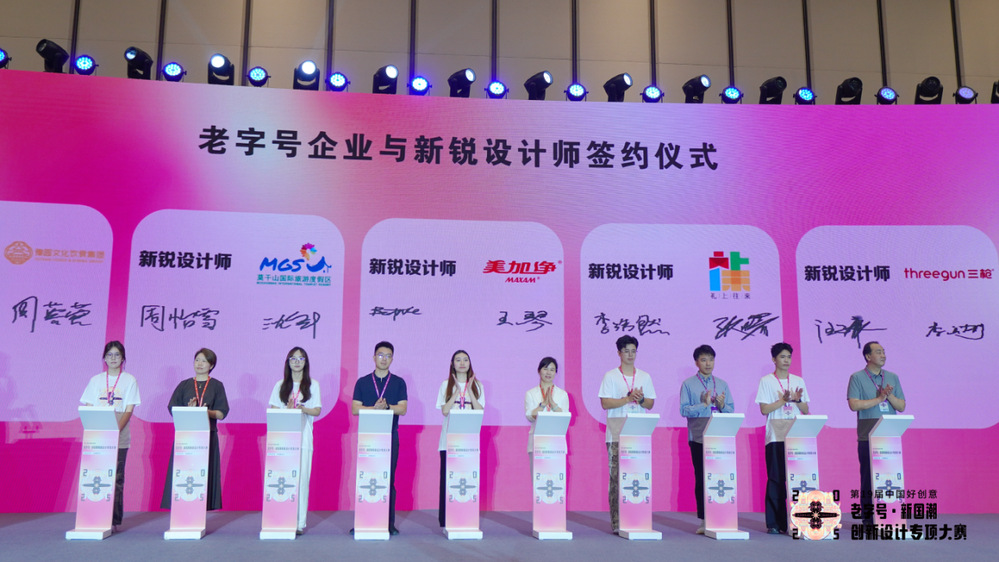 上海美加净日化有限公司董事长王琴、上海大光明文化集团副总经理张曙、德清县莫干山镇镇长沈华峰、上海梨膏糖食品厂厂长周蓉蓉、上海龙头(集团)股份有限公司技术总监李天剑代表各自企业,与大赛获得一等奖的青年设计师代表签约,推动创意成果加速向市场转化。