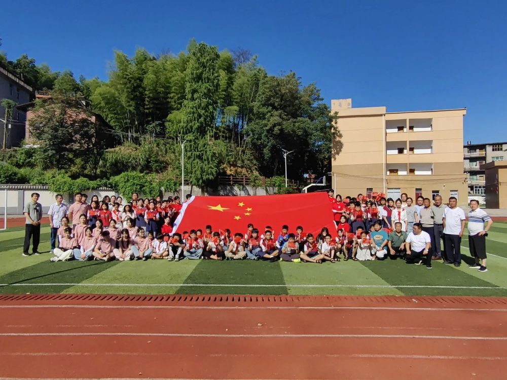 当国旗缓缓经过队列时,杉溪学校的孩子们仰起脸庞,眼中闪烁着崇敬的光芒。他们轻轻伸手触摸国旗的边缘,指尖触碰的不仅是织物的纹理,更是穿越时空的历史厚重感。支教团队成员引导孩子们有序感受国旗的温度,现场形成一幅 红旗映童颜 的动人画面。