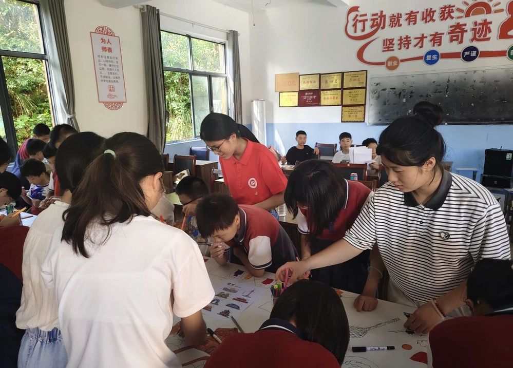 随后,华理支教团为当地学生开展 国旗主题美育课堂。通过绘画、手工制作等形式,让孩子们在艺术创作中学习国旗的历史渊源与象征意义。支教队员引导学生用五彩画笔描绘心中的国旗,将 五角星 的构图原理与革命故事相结合,让爱国情怀在色彩与线条中自然流淌,在孩子们心中播下红色种子。