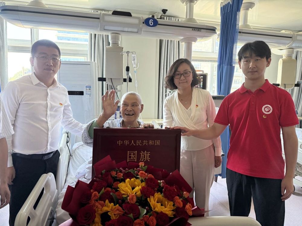 华理师生还去县医院看望慰问了当地抗战老红军、新四军老战士叶英同志。虽已年过百岁,老英雄仍精神矍铄,与大家共同回忆了他和战友们当年在烽火中坚守信仰、为国家和民族奋勇征战的经历。这场以生命记忆为教材的 沉浸式党课,让师生们深刻理解了国旗所承载的信仰力量与历史重量。