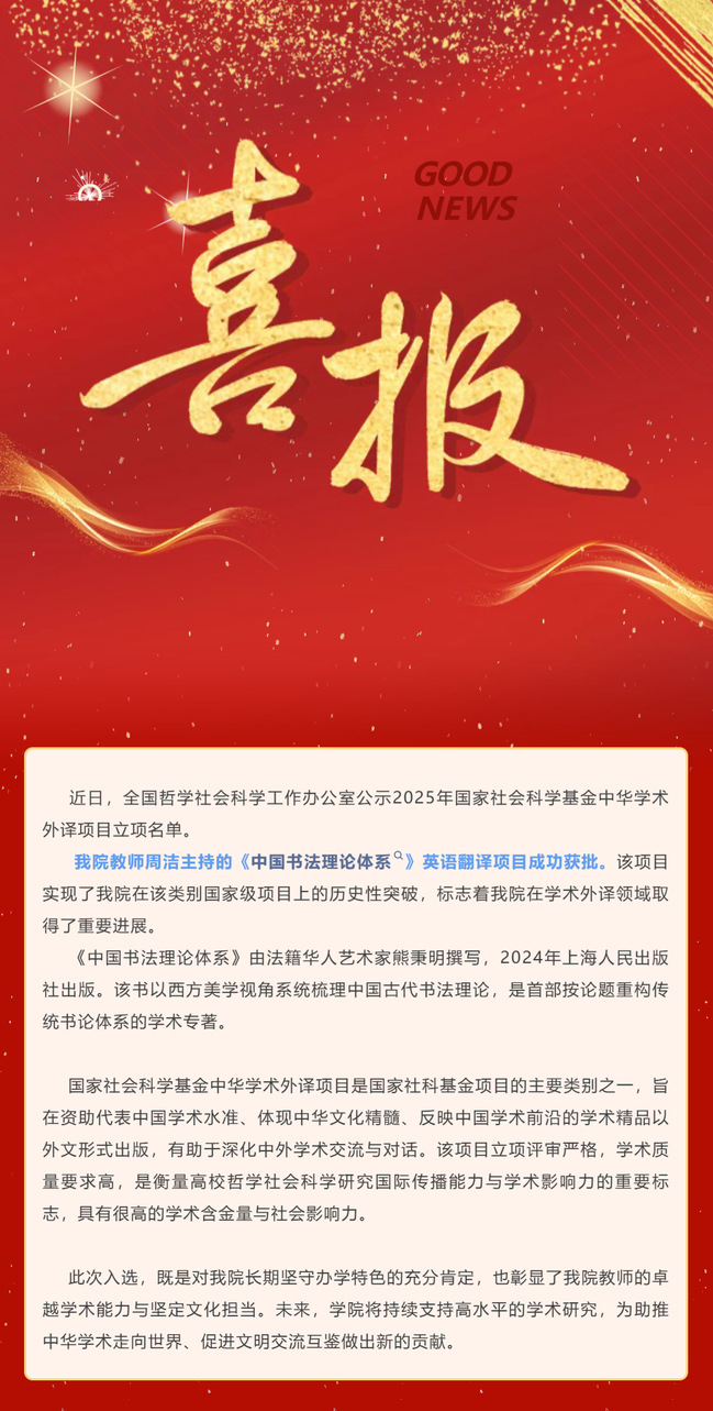 喜报 | 我院教师首次获批国家社科基金中华学术外译项目 助力中华文化国际传播